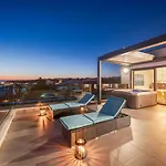 A Mediteran Luxury Penthouse With Jacuzzi Apartman erkélyt, teraszt és ülősarkot kínál, valamint olyan kényelmeket, mint a klímaberendezés. A szálláshely vendégei számára a fürdőszobában olyan kényelmi felszereléseket kínál, mint a hajszárító és törölközők. Fürdőkád és zuhanyzó is található.